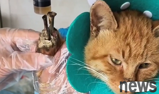A stray cat whose leg was burned off, and maggots have begun to grow in the wound, still treats people who are close to it gently