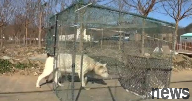 The puppy felt uneasy because it was in a strange environment. Dabai ran over immediately when he heard the puppy's bark. But Dabai did not enter the cage immediately. Instead, he remained vigilant and looked around the cage. Although it wanted to return to the child, it was still very doubtful. After a while, Dabai, who wandered around the child for a while, probably couldn't bear to hear the baby dog's whining. As if he had made up his mind, he slowly approached the cage. The moment Baymax entered the cage, the door of the cage closed immediately.