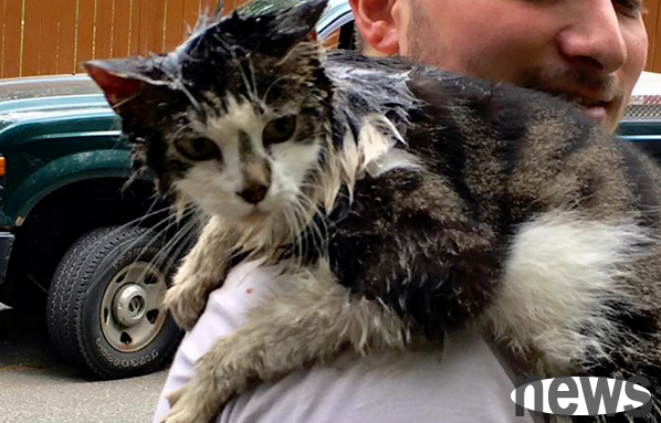 The kitten was trapped in the drainage ditch and her life was in danger. Fortunately, the warm-hearted firefighter rescued her.