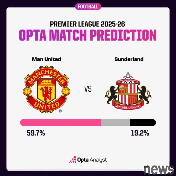According to opta's supercomputer simulation, Manchester United's winning rate in this game is 59.7%, the probability of a draw is 21.1%, and Sunderland's probability of winning is 19.2%.