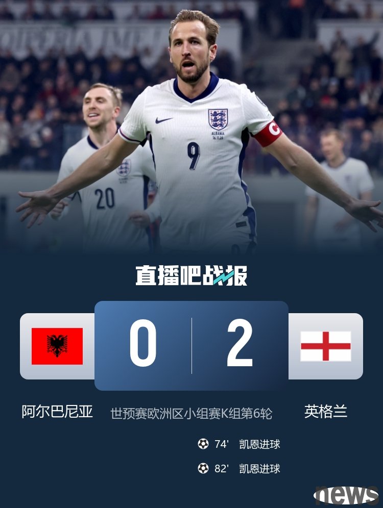 Kane scored twice as England defeated Albania 2-0 in the World Cup qualifying match.