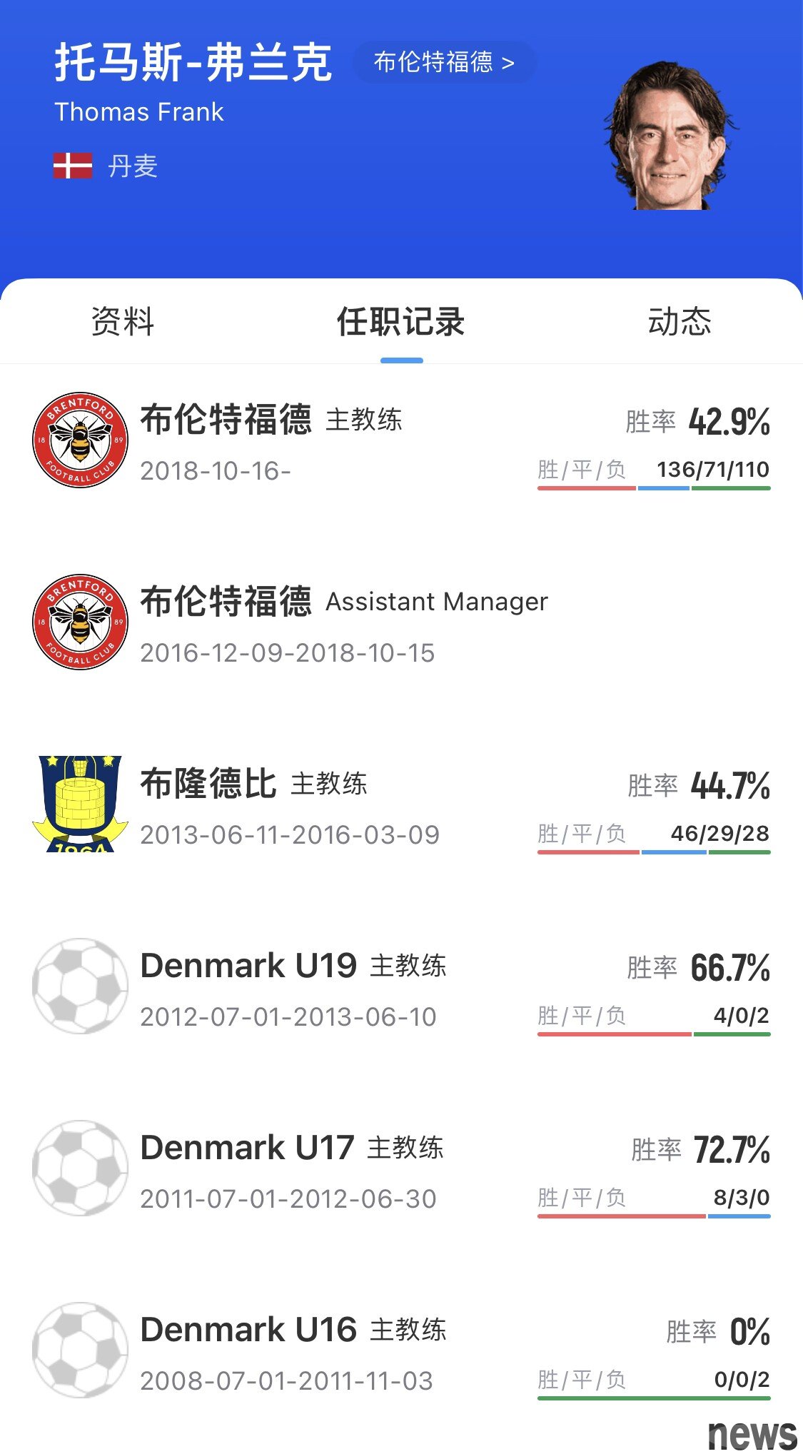 Thomas Frank is 51 years old. He came to the UK to become Brentford's assistant coach in 2016. He became the head coach of the Bees in October 2018. The original contract expires in 2027.