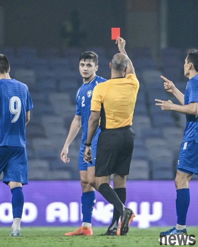 In the 69th minute of the game, an Uzbek player made a mistake in a cross pass from the backcourt. Husanov directly tackled the Iranian player without touching the ball, and was sent off by the referee.